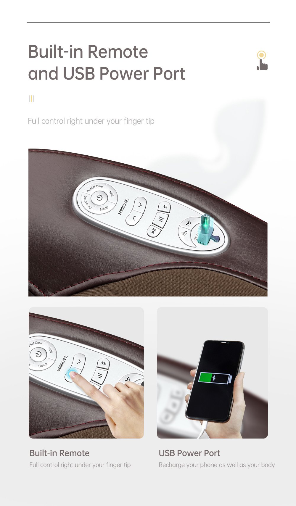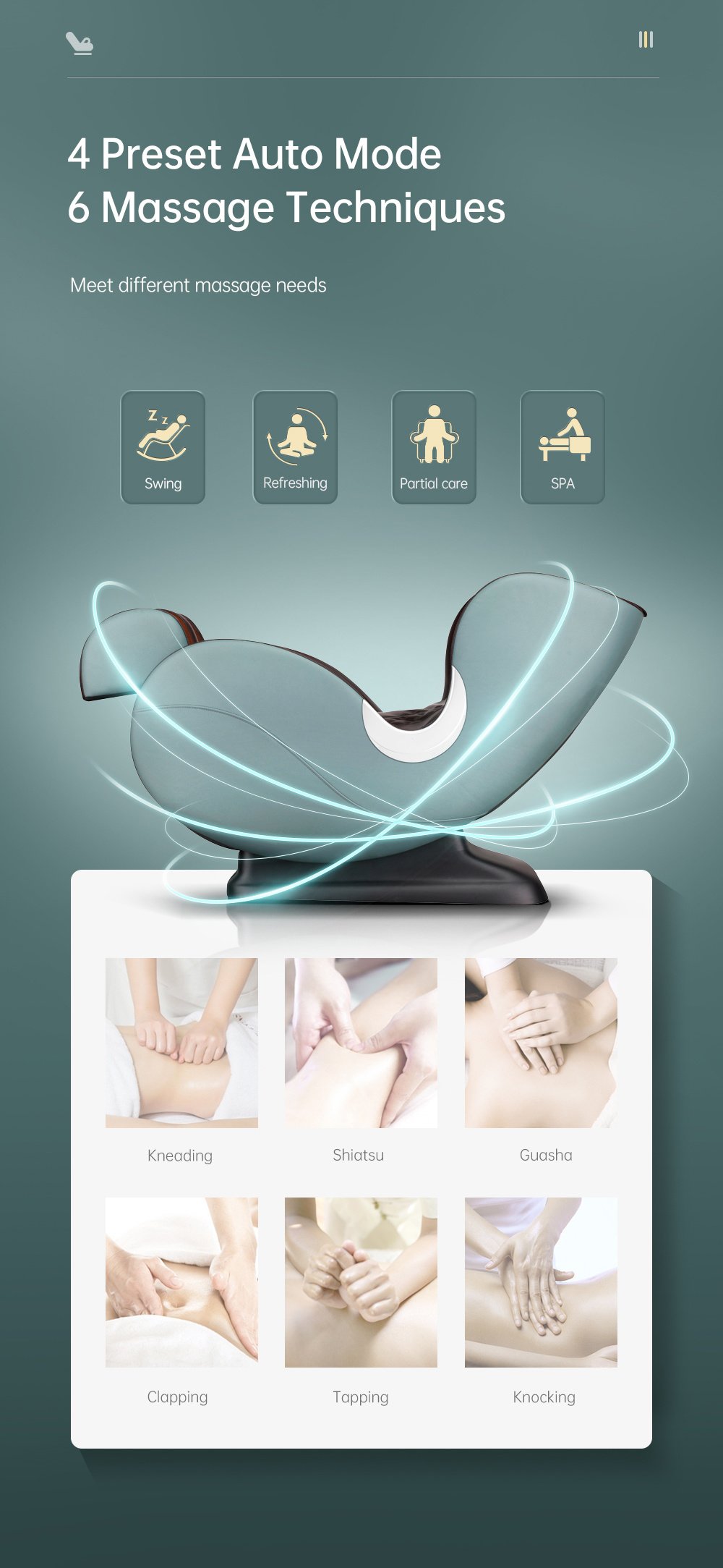 Convenient: The product is one-piece packaging, and can be used without installation. Built-in Remote: full control right under your finger tip. USB Power Port: recharge your phone as well as your body.Talented & Versatile: Lumbar Heat Therapy helps loosen your muscles and improve blood circulation. The Zero-Gravity Massage gives you the best massage position to free your body, can reduce the burden of heart and back pain. HIFI Bluetooth Speaker: enjoy your music while having a massage. Material: synthetic leather. Our professional team with more than 12 years of experience is responsible for creating comfortable, reliable and safe products for you. Every link of all products is strictly inspected, and only after passing the quality inspection can they be sold.Meet Different Massage Needs: 4 preset auto modes: Swing, Refreshing, Partial Care, SPA; 6 massage techniques: Kneading, Shiatsu, Guasha, Clapping, Tapping, Knocking. Ergonomic Long SL-Track covers from your lower head to upper thigh area. Airbag massage help release the tension of buttocks and calf.Suitable Height Range: fit people from 155 cm to 180 cm / 5'--5.9'Weight Capacity: 100 KG/220 poundsSeat Depth-Front to Back 48.57inch;Seat Height-Floor to Seat 15inch;Back Height-Seat to Top of Back 31inch;Seat Width-Side to Side 17.72inch;Arm Height-Floor to Arm 22inch;Leg Height-Top to Bottom 15inch;Minimum Door-Width Side to Side 27inch;Required Back- Clearance to Recline 2.81inchTwo massage chairs (same function, some differences in appearance) are shipped randomly.